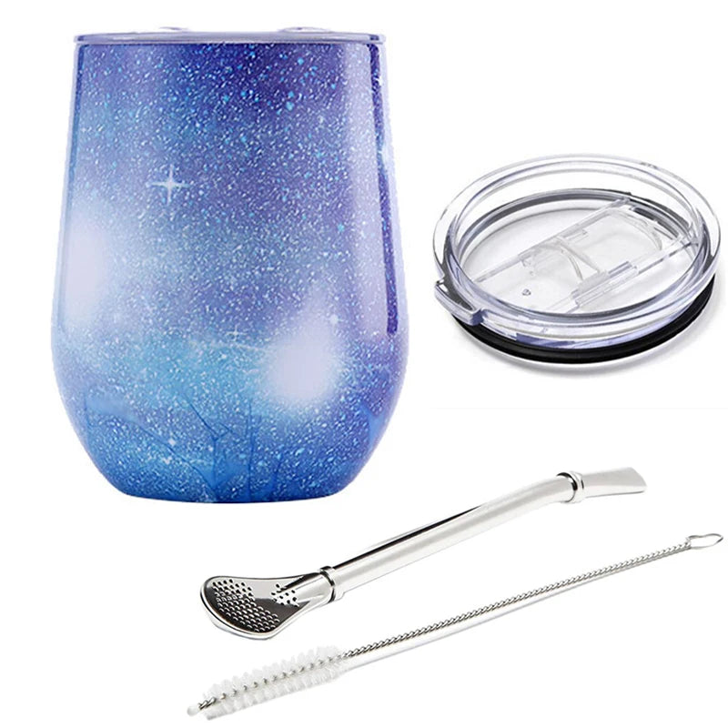 12oz Yerba Mate Tea Cup Stainless Steel Insulated Mug with Sliding Lid and Straw Coffee Cup Cocktail Champagne Cute Tumbler Cups